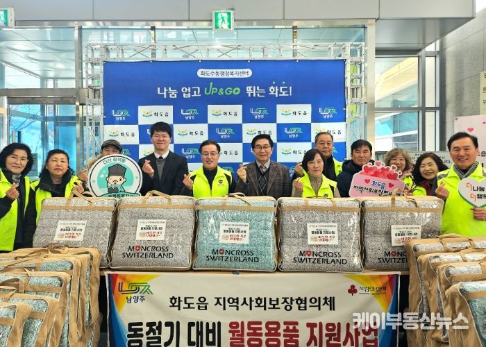 케이부동산뉴스 김교민 기자 | 남양주시는 지난 4일 화도읍 지역사회보장협의체가 본격적인 동절기 한파에 대비해 취약계층의 따뜻한 겨울나기를 위한 ‘동절기 대비 월동용품 지원사업’을 추진했다고 밝혔다.