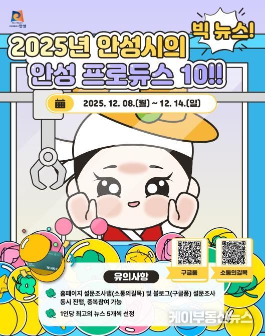 케이부동산뉴스 김교민 기자 | 안성시는 8일부터 14일까지 7일간 ‘2025년을 빛낸 안성시 10대 뉴스’ 선정을 위한 온·오프라인 시민 투표를 진행한다고 밝혔다.