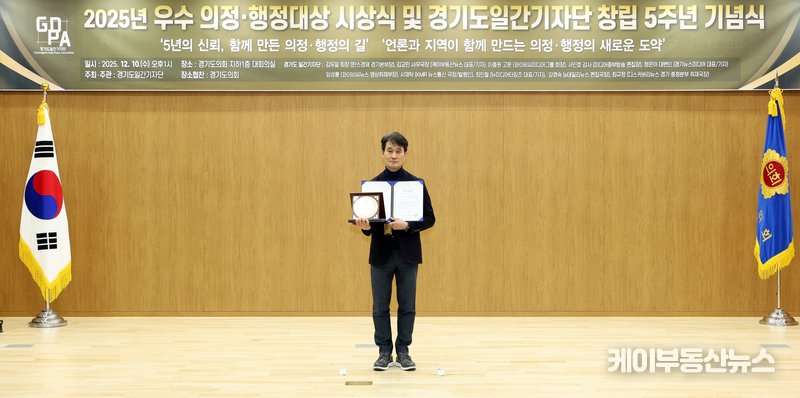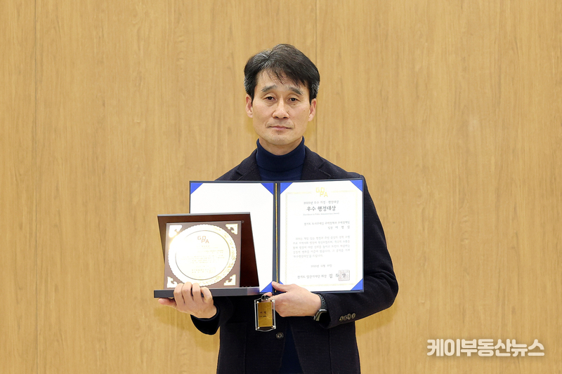 케이부동산뉴스 김교민 기자 | 경기도 도시주택실 이명섭 주택정책팀장이 도민 주거안정과 주거복지 향상에 기여한 공로로 ‘2025 우수 의정·행정대상’에서 우수행정대상을 수상했다.