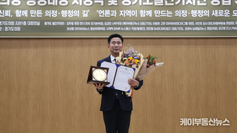 케이부동산뉴스 김교민 기자 | 오산시의회 성길용 부의장(더불어민주당, 대원1·2·남촌·초평동)이 12월 10일 경기도의회 대회의실에서 열린 2025년 우수 의정 행정대상 시상식에서 ‘협치·책임의정 리더십 명예대상(Honorary Award for Leadership in Cooperative and Accountable Legislative Governance)’을 수상했다. 이번 상은 의회 운영 과정에서 협치 기반의 리더십과 책임 있는 의정 문화를 정착시키는 데 기여한 의회 지도자에게 수여되는 명예상으로, 성 부의장의 균형 감각 있는 의회 운영 철학과 시민 중심 의정이 높은 평가를 받았다.