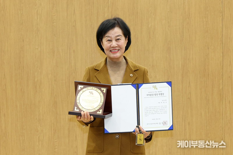 케이부동산뉴스 김교민 기자 | 경기도의회 박명숙 의원(국민의힘, 양평1)이 12월 10일 경기도의회 대회의실에서 열린 ‘2025 우수 의정·행정대상’ 시상식에서 '자치분권 발전 특별상(Special Award for Excellence in Local Autonomy & Decentralization)'을 수상했다.