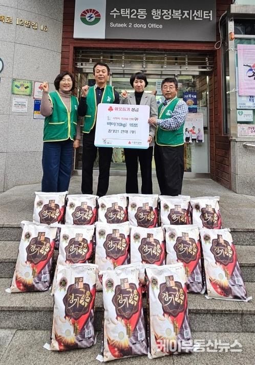 케이부동산뉴스 김교민 기자 | 구리시 수택2동은 지난 16일 구리시 환경21연대로부터 50만원 상당의 백미 10kg 15포를 후원받았다고 밝혔다.