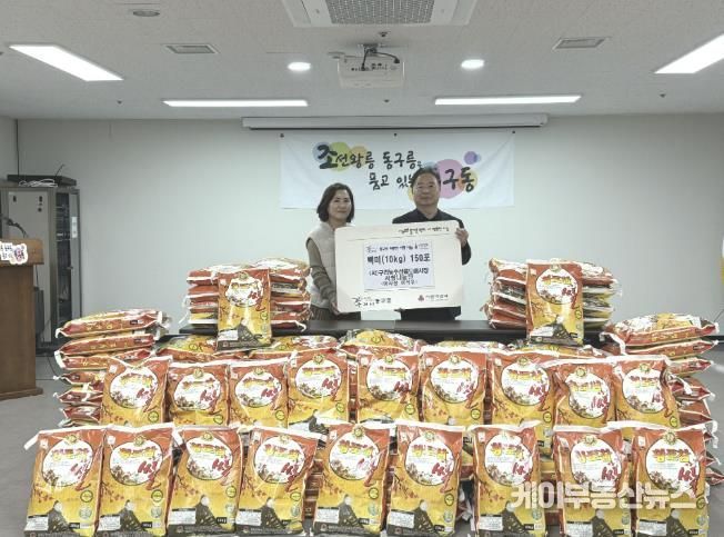 케이부동산뉴스 김교민 기자 | 구리시 동구동은 지난 16일 동구동 행정복지센터 대회의실에서 (사)구리농수산물도매시장 사랑나눔단으로부터 관내 취약계층을 위한 백미(10kg) 150포를 전달받았다.