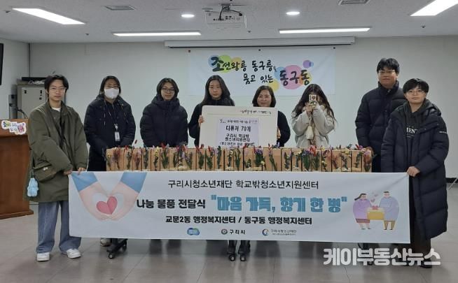 케이부동산뉴스 김교민 기자 | 구리시청소년재단 학교밖청소년지원센터는 지난 12월 15일 학교 밖 청소년들과 함께 교문2동 행정복지센터를 방문해 지역 내 홀몸 어르신들을 위해 디퓨저 100개를 전달했다.