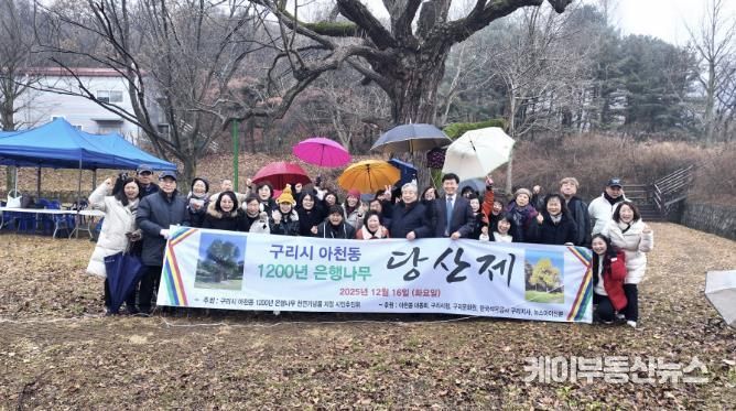 케이부동산뉴스 김교민 기자 | 구리시는 12월 16일 한국석유공사 구리지사 내에 위치한 아천동 은행나무 앞에서 마을의 안녕과 풍요를 기원하는 ‘아천동 은행나무 당산제’가 열렸다고 밝혔다.