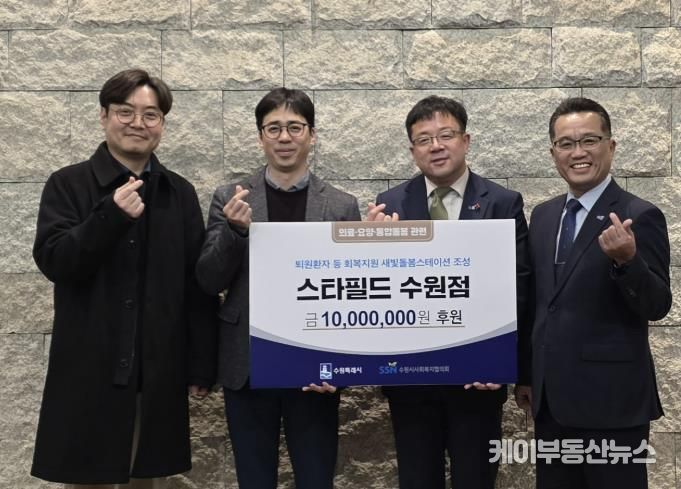 성금은 수원시사회복지협의회에 지정 기탁해 새빛돌봄스테이션 이용자를 위한 무장벽(배리어프리)설비 설치, 안전·편의 물품 지원 등에 사용할 예정이다.