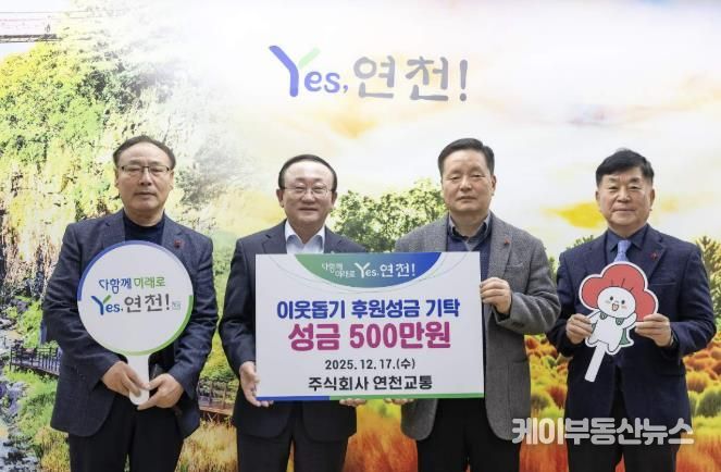 케이부동산뉴스 김교민 기자 | 연천군 신서면에 소재한 ㈜연천교통은 지난 17일 연천군청을 방문해 관내 소외계층을 돕기 위한 후원성금 500만원을 기탁했다.