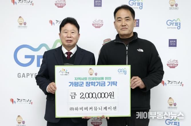 케이부동산뉴스 김교민 기자 | ㈜하비비커뮤니케이션 강동구 대표는 지난 17일 가평군청을 방문해 가평군 교육발전을 위한 장학금 200만 원을 전달했다.