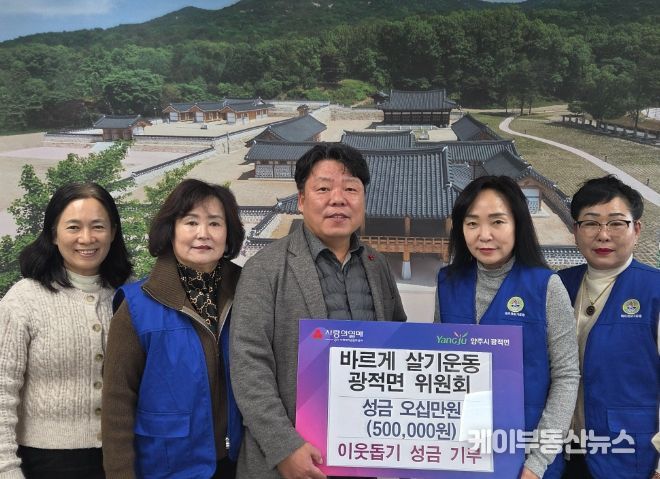 케이부동산뉴스 김교민 기자 | 바르게살기운동 광적면위원회가 지난 17일 관내 취약계층을 돕기 위해 광적면행정복지센터에 성금 50만 원을 기부했다.