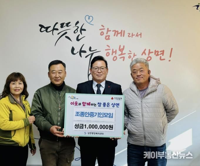 서태원 상면장은 “어려운 이웃을 먼저 생각해 성금을 기탁해 준 조종안중기인모임 여러분께 깊은 감사의 말씀을 드린다”며 “이번 성금이 우리 면의 복지사각지대 해소에 도움이 되고, 지역사회가 한층 더 따뜻해지는 계기가 되길 바란다”고 전했다.
