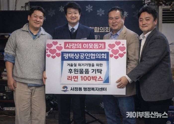 케이부동산뉴스 김교민 기자 | 평택시 서정동 행정복지센터는 지난 18일 평택상공인협의회가 겨울철 복지 사각지대에 놓인 취약계층을 돕기 위한 라면 100박스를 기부했다고 밝혔다.