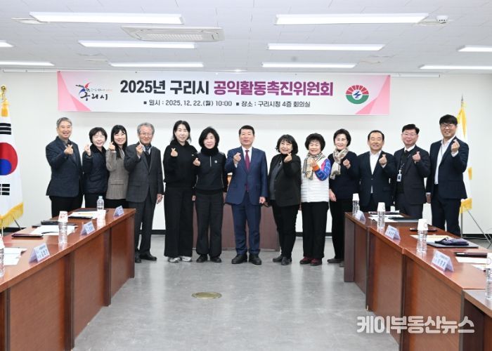 케이부동산뉴스 김교민 기자 | 구리시는 지난 22일 구리시청 회의실에서 ‘2025년 구리시 공익활동촉진위원회’를 개최하고, 2025년 공익 활동 지원 사업 추진 실적을 보고받은 뒤 2026년 공익 활동 지원 사업 추진계획을 심의·의결했다.