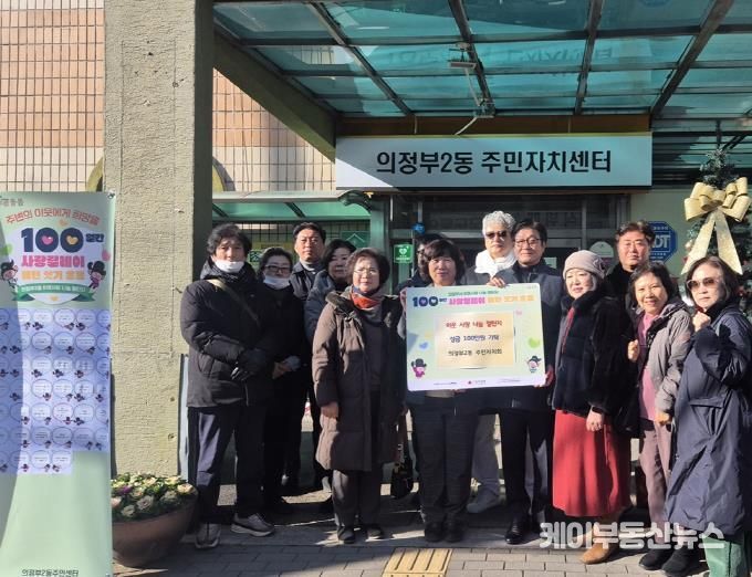 케이부동산뉴스 김교민 기자 | 의정부시 의정부2동주민센터는 12월 22일 의정부2동 주민자치회가 ‘100일간 사랑릴레이 배턴 잇기’에 동참해 취약계층을 위한 성금 100만 원을 전달했다고 밝혔다.