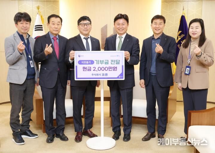 케이부동산뉴스 김교민 기자 | 부천시는 지난 22일 ㈜코콤이 지역 주거취약계층 지원을 위해 2천만 원을 기탁했다고 23일 밝혔다.