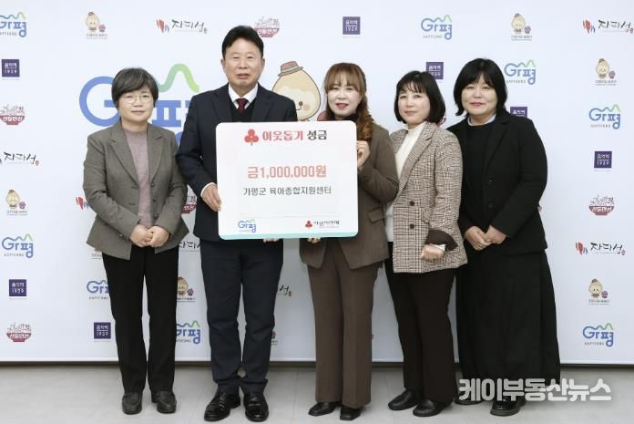 케이부동산뉴스 김교민 기자 | 가평군육아종합지원센터는 최근 연말을 맞아 어려운 이웃을 돕기 위해 성금 100만원을 가평군에 기탁했다.