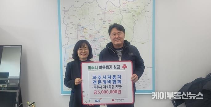 케이부동산뉴스 김교민 기자 | 파주시는 지난 22일, 파주시자동차전문정비협회가 파주시청을 방문하여 관내 취약계층을 위해 써달라며 현금 5백만 원을 기탁했다고 밝혔다.
