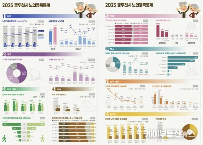 이번 통계는 경인지방통계청과의 업무협약을 통해 인구·가구·인구 이동·주택·건강·복지·소득·일자리·안전 등 9개 핵심 분야, 총 82개 항목을 대상으로 행정자료와 기존 통계자료를 연계·결합해 세밀하게 구성했다. 조사 대상은 2024년 기준 동두천시에 주민등록이 된 만 65세 이상 노인이다.