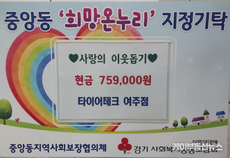 케이부동산뉴스 김교민 기자 | 타이어테크 여주점은 지난 23일 연말을 맞아 지역사회 취약계층을 돕기 위해 성금 75만9천원을 중앙동행정복지센터에 기탁했다.