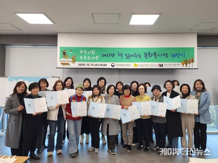 케이부동산뉴스 김교민 기자 | 부천시립수주도서관은 지난 17일 ‘2025 책 읽어주는 문화봉사단’의 활동을 마무리하고, 사업 성과 공유회와 해단식을 개최했다고 밝혔다.