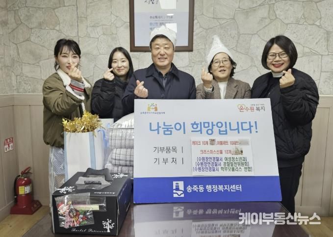 케이부동산뉴스 김교민 기자 | 수원시 장안구 송죽동은 지난 24일 장안경찰서로부터 연말을 맞아 지역 내 조손가정 등 취약계층을 위한 후원 물품을 기부했다고 밝혔다.