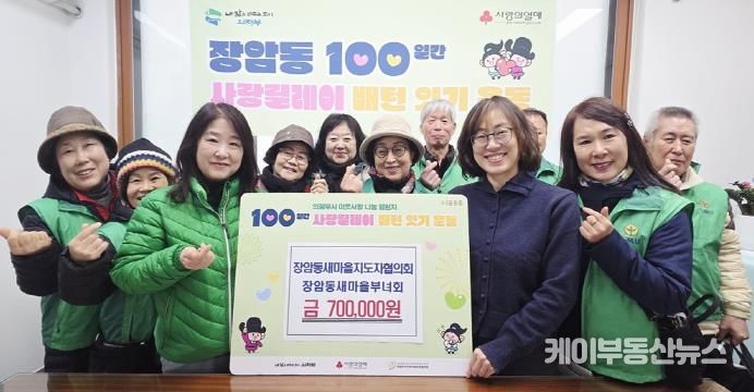 케이부동산뉴스 김교민 기자 | 의정부시 장암동주민센터는 12월 23일 장암동 새마을부녀회·새마을지도자협의회가 겨울철 취약계층을 돕기 위해 성금 70만 원을 기부했다고 밝혔다.