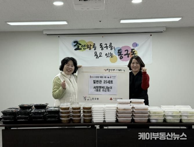 케이부동산뉴스 김교민 기자 | 구리시 동구동은 지난 24일 동구동 행정복지센터에서 비영리단체 사랑행복나눔이로부터 관내 취약계층을 위한 밑반찬 25세트를 전달받았다고 밝혔다.