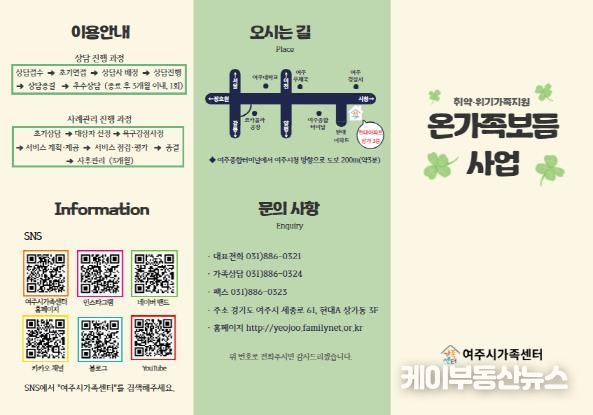 케이부동산뉴스 김교민 기자 | 여주시가족센터는 가족의 다양성을 존중하고 취약·위기가정의 안정적인 삶을 지원하기 위해 '온가족보듬사업'을 적극적으로 운영했다.