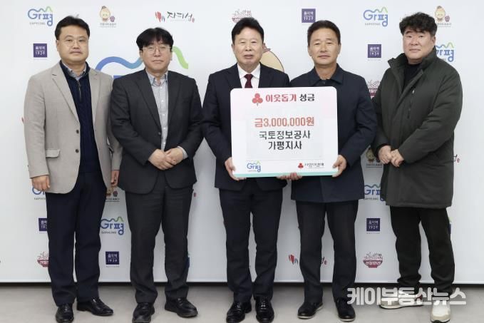 케이부동산뉴스 김교민 기자 | 한국국토정보공사 가평지사는 지난 24일 지역 내 어려운 이웃을 돕기 위한 성금 300만원을 가평군에 기탁했다.