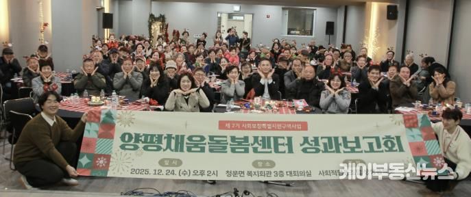 케이부동산뉴스 김교민 기자 | 양평군은 지난 24일 청운면 다목적복지회관에서 보건복지부 공모사업으로 추진 중인 ‘사회보장 특별지원구역 사업’ 성과 공유회를 개최했다고 밝혔다.