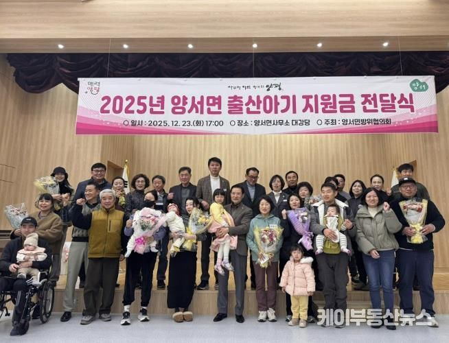 케이부동산뉴스 김교민 기자 | 양서면 방위협의회는 지난 23일 저출산 극복과 출산 장려 분위기 조성을 위해 ‘2025년 양서면 출산아기 지원금 전달식’을 개최했다.