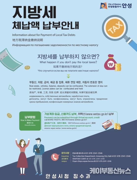 케이부동산뉴스 김교민 기자 | 안성시는 외국인 근로자의 지방세 체납액 징수를 위해 외국인 전용보험 압류를 추진한다고 밝혔다.