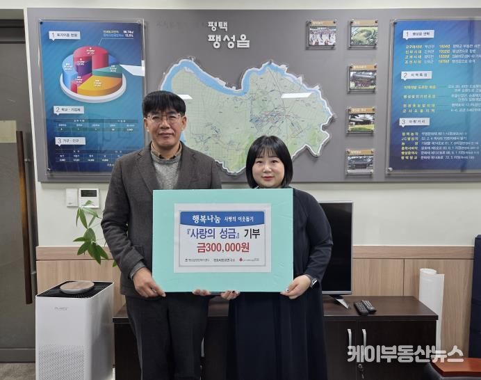 케이부동산뉴스 김교민 기자 | 경토리민요연구소의 박정은 대표는 지난 24일, 팽성읍 행정복지센터를 방문해 저소득 가구 지원을 위한 성금 30만 원을 전달했다.
