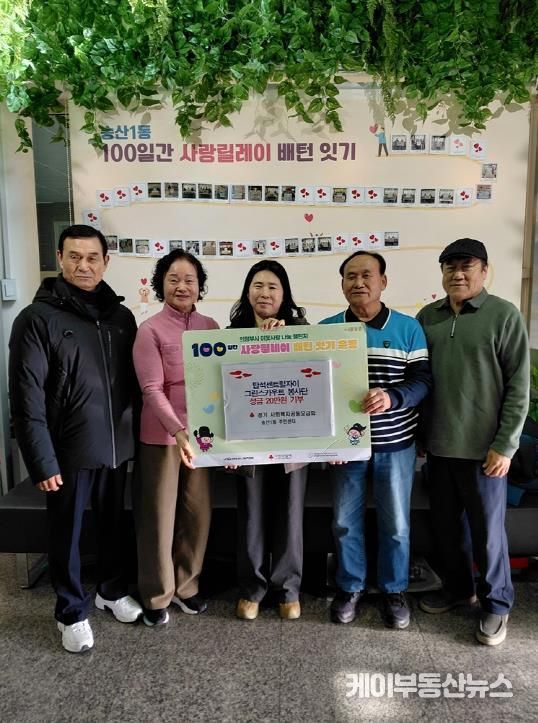 케이부동산뉴스 김교민 기자 | 의정부시 송산1동주민센터는 12월 22일 용현동 소재 탑석자이그린스카우트 봉사단이 ‘100일간 사랑릴레이 배턴 잇기’에 동참해 취약계층을 위한 성금 20만 원을 후원했다고 밝혔다.