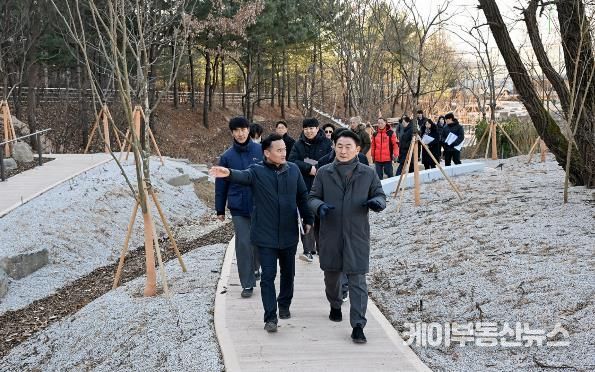 케이부동산뉴스 김교민 기자 | 의정부시는 2026년 병오년 새해를 맞아 1월 8일 녹지 인프라 확충을 위한 주요 사업 대상지를 현장 점검했다. 점검 대상지는 ▲장암동 실외정원 ▲용현산업단지 완충녹지 산책로 및 가로숲길 조성 사업지 ▲민락동 감성쉼터 등이다. 이번 점검은 도심 속 쉼터와 실외정원 확충, 안전한 보행환경 조성, 산림 명소 발굴 등 녹지 인프라 조성 사업의 추진 현황을 점검하고, 시민들이 일상에서 녹지 공간을 보다 쉽게 이용할 수 있도록 추진 중인 ‘도시숲 프로젝트’의 사업 방향과 현장 여건을 확인하기 위해 진행됐다.