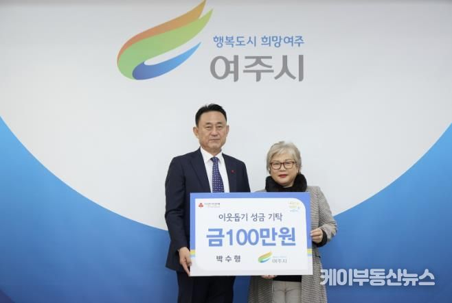 케이부동산뉴스 김교민 기자 | 지난 9일 여주시민 박수형님(59년생)은 여주시를 방문하여 이웃돕기 성금 100만원을 기탁했다.