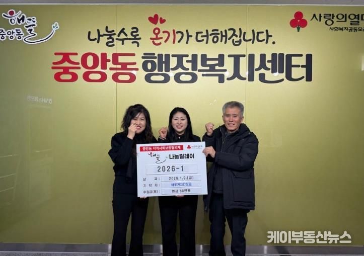 이번 기탁은 중앙동에서 추진 중인 ‘해뜰릴레이’의 첫 번째 나눔으로, ‘해뜰릴레이’는 후원금과 후원품 기부자를 중심으로 릴레이 형식의 나눔을 이어가며 기부 문화 확산과 지속적인 이웃사랑 실천을 도모하는 사업이다. 특히 이번 후원은 2026년 병오년 새해를 여는 첫 해뜰릴레이로, 지역사회에 따뜻한 나눔의 의미를 더했다.