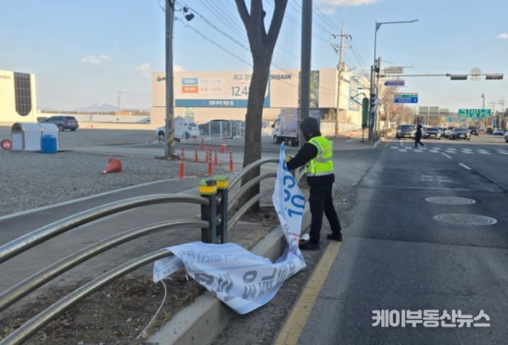 케이부동산뉴스 김교민 기자 | 김포시는 지난 주말 강풍특보 발효에 따라 시민 안전을 위협하는 간판과 현수막에 대해 긴급 점검 및 정비를 실시했다.
