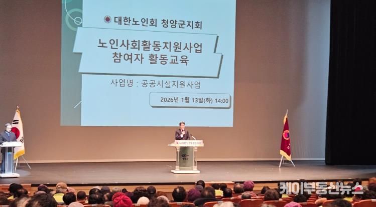 케이부동산뉴스 김교민 기자 | (사)대한노인회 청양군지회가 지난 13일 문화예술회관에서 공공시설지원사업 참여자 550명을 대상으로 노인일자리사업 참여자 교육을 실시했다고 밝혔다.