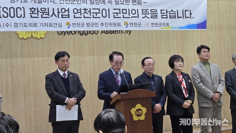 케이부동산뉴스 김교민 기자 | 연천군이 ‘경기 생활 속(SOC) 환원사업’ 오디션 공모 대응을 위해 경기도의회에서 공식 기자회견을 열고, 사업 대상지로서의 적합성과 필요성을 집중적으로 강조했다.