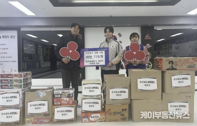 케이부동산뉴스 김교민 기자 | 한국체대MTA태권도가 지난 15일 지역 내 어려운 이웃을 돕기 위해 라면 776개를 옥정2동 행정복지센터에 기탁했다.