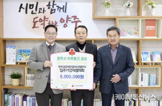 케이부동산뉴스 김교민 기자 | 양주시가 지난 15일 시장실에서 양주검준패션칼라사업협동조합을 비롯한 관련 단체 및 기업으로부터 이웃돕기 성금과 성품을 기탁받았다고 밝혔다.