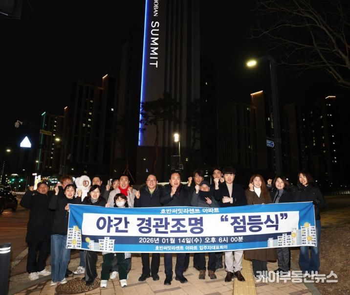 이번 점등식은 기존 옥탑부 조명을 보완해 새롭게 설치한 ‘라인 경관조명’의 본격적인 가동을 알리는 행사로, 아파트 외벽을 따라 조성된 경관조명이 점등되며 단지 전반의 야간 경관이 한층 밝고 쾌적하게 개선됐다.