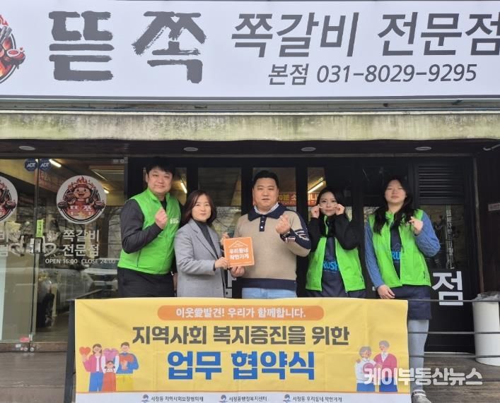 케이부동산뉴스 김교민 기자 | 평택시 서정동 지역사회보장협의체는 지난 14일, 서정동에 있는 음식점 ‘뜯쪽!’을 '우리동네 착한가게'로 지정하고 현판 전달과 함께 지역사회 복지증진을 위한 협약을 체결했다.