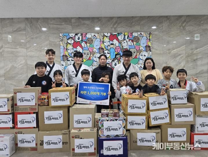 케이부동산뉴스 김교민 기자 | 평택시 고덕동에 있는 한국체대 가온태권도장에서 지난 15일 원생들이 십시일반 모은 라면 1000개를 고덕동 행정복지센터에 전달했다.