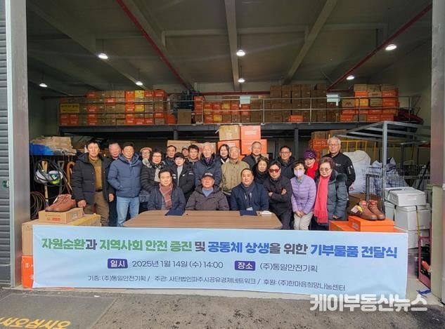 케이부동산뉴스 김교민 기자 | 파주시는 지난 14일, 사회적기업 ㈜통일안전기획이 기부한 안전화 3,000켤레를 ㈔파주시공유경제네트워크가 지역 수요에 맞춰 배분하는 전달식을 진행했다고 밝혔다.