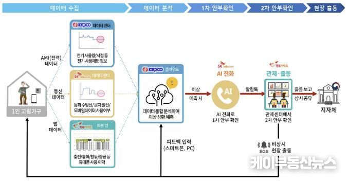 이 서비스는 한국전력공사, SK텔레콤, 행복커넥트가 함께 참여한다. 1인 가구에서 일정 기간 휴대폰 통신기기의 전기 사용량 변화가 감지되지 않으면 이상 상황으로 판단하고 단계별 확인 절차에 들어간다.