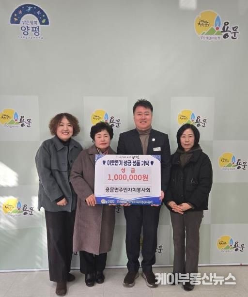 케이부동산뉴스 김교민 기자 | 양평군 용문면 주민자치봉사회은 지난 16일 용문면 내 어려운 이웃을 돕기 위해 성금 100만 원을 기부하며 따뜻한 나눔을 실천했다.