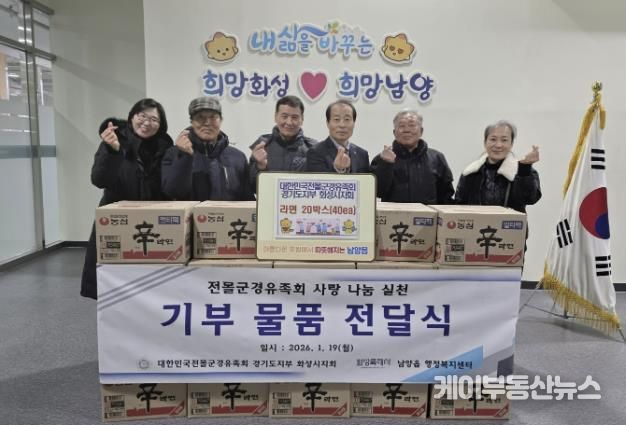 케이부동산뉴스 김교민 기자 | 대한민국전몰군경유족회 경기도지부 화성시지회가 지난 19일 남양읍행정복지센터에 지역 내 어려운 이웃들을 돕기 위한 라면 20박스를 기탁하며 따뜻한 나눔의 뜻을 전했다.