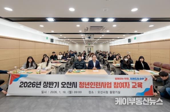 케이부동산뉴스 김교민 기자 | 오산시는 지난 19일 시청 물향기실에서 상반기 청년인턴 46명을 대상으로 직무역량 강화교육을 실시했다고 밝혔다.