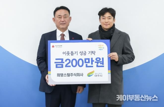 케이부동산뉴스 김교민 기자 | 지난 19일 여주시 삼교동 소재 희망스틸주식회사 김영기 대표는 여주시를 방문하여 이웃돕기 성금 200만원을 기탁했다.